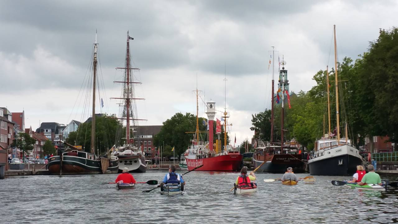 Die Emdener Gewässer erkundeten Wanderpaddler des VKB gemeinsam mit Paddlern unserer Bootshausnachbarn Störtebeker und Welse-Delme-Weser-Paddlern aus Delmenhorst am sonnigen Wochenende 2. bis 4. August 2019. Gezeltet wurde beim Emder Kanu-Club, ruhig, innenstadtnah und natürlich mit direktem Gewässerzugang. Die Paddelausflüge führten auf verschiedenen Wasserwegen in die Emder Innenstadt, in die Häfen und in die weitere Umgebung. Ein besonderes Erlebnis war das Schleusen in der Kesselschle (...)